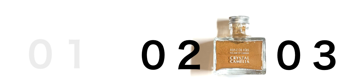 クリスタルカメリアオイルボトルには、つばき花ドライパウダーを入れずにお使いください。